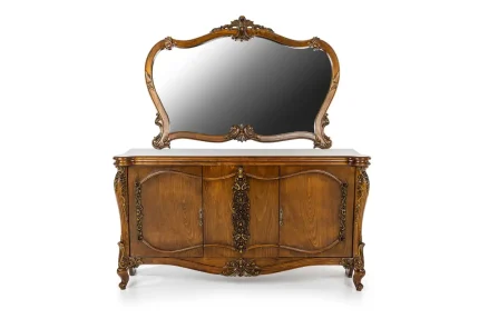 - آینه کنسول کلاسیک پایهدار و دیواری با چوب طبیعی و منبتکاریهای لوکس