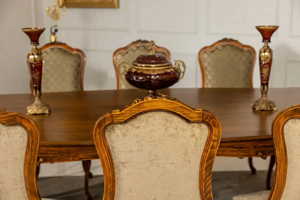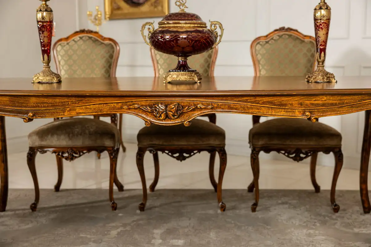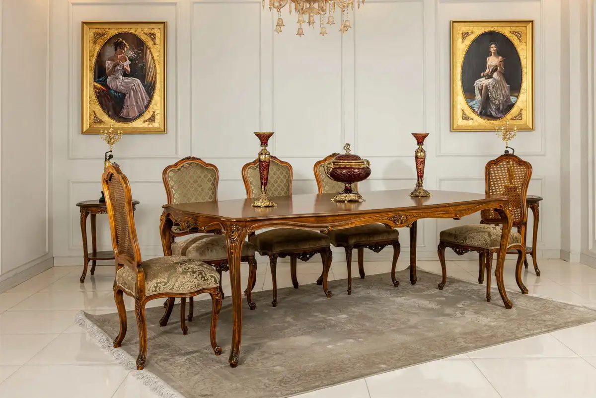 ست غذاخوری مدل سیوان طراحی بسیار مطلوب ومتناسبی دارد که منبت های ظریف نمایی متمایز در ان به وجود اورده اند .