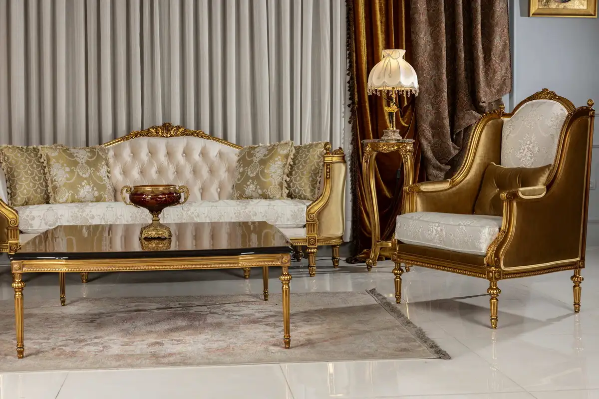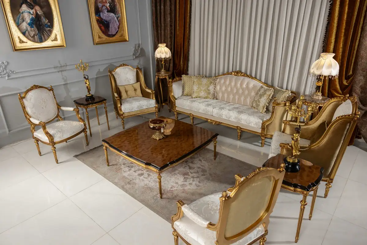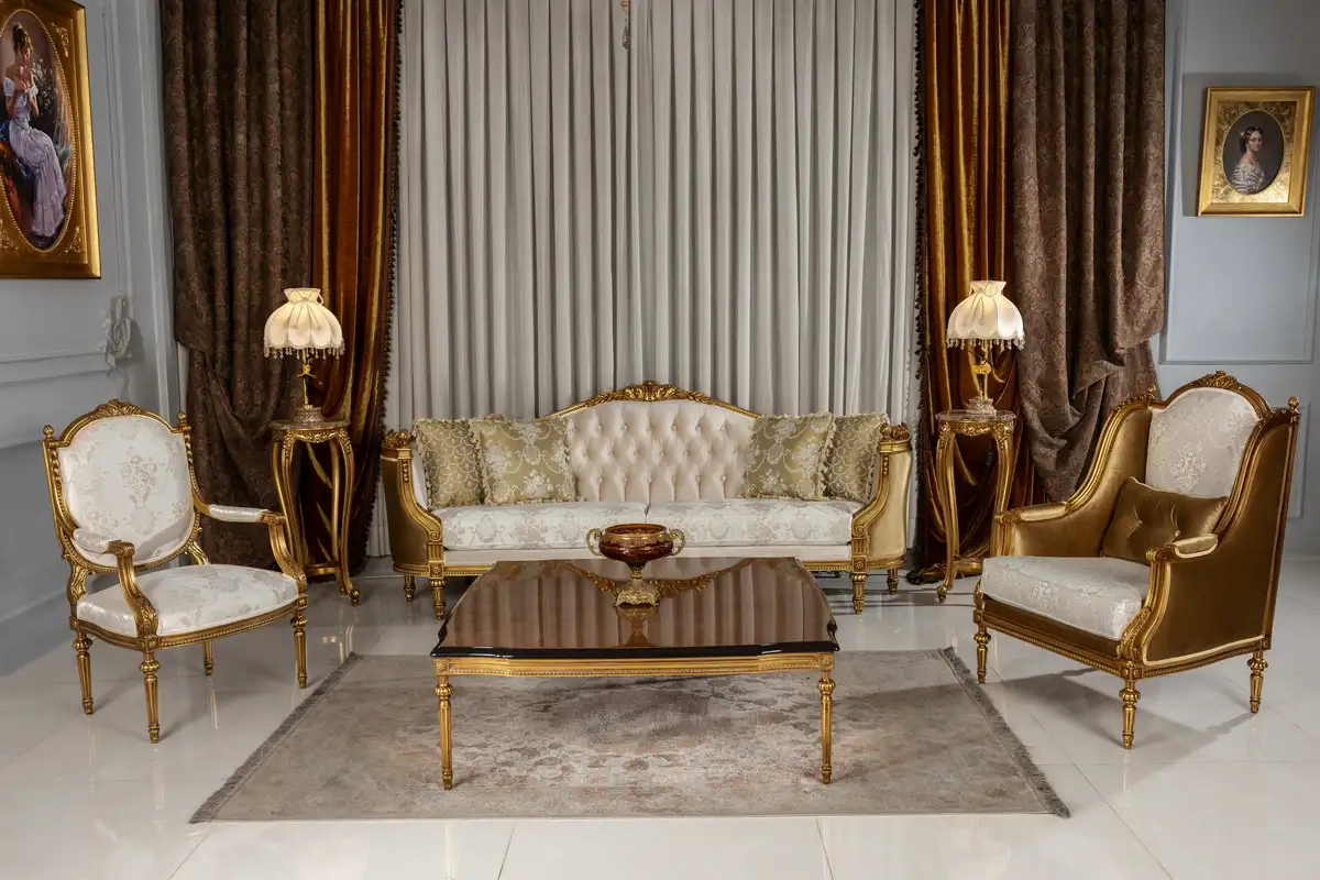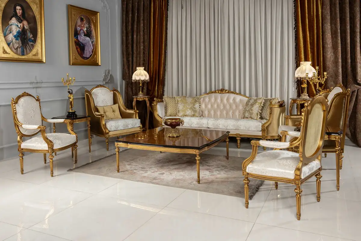 ست مارکیز زیبا شامل یک کاناپه و2 عدد کوئین و 2 عدد مبل تک فرانسوی ویک عدد جلومبلی و 2عدد میز عسلی می باشد . درکنار این ست زیبا می توان از استند میز سرو میز قهوه خوری نیز استفاده کرد که ترکیب فوق العاده ای را می سازد