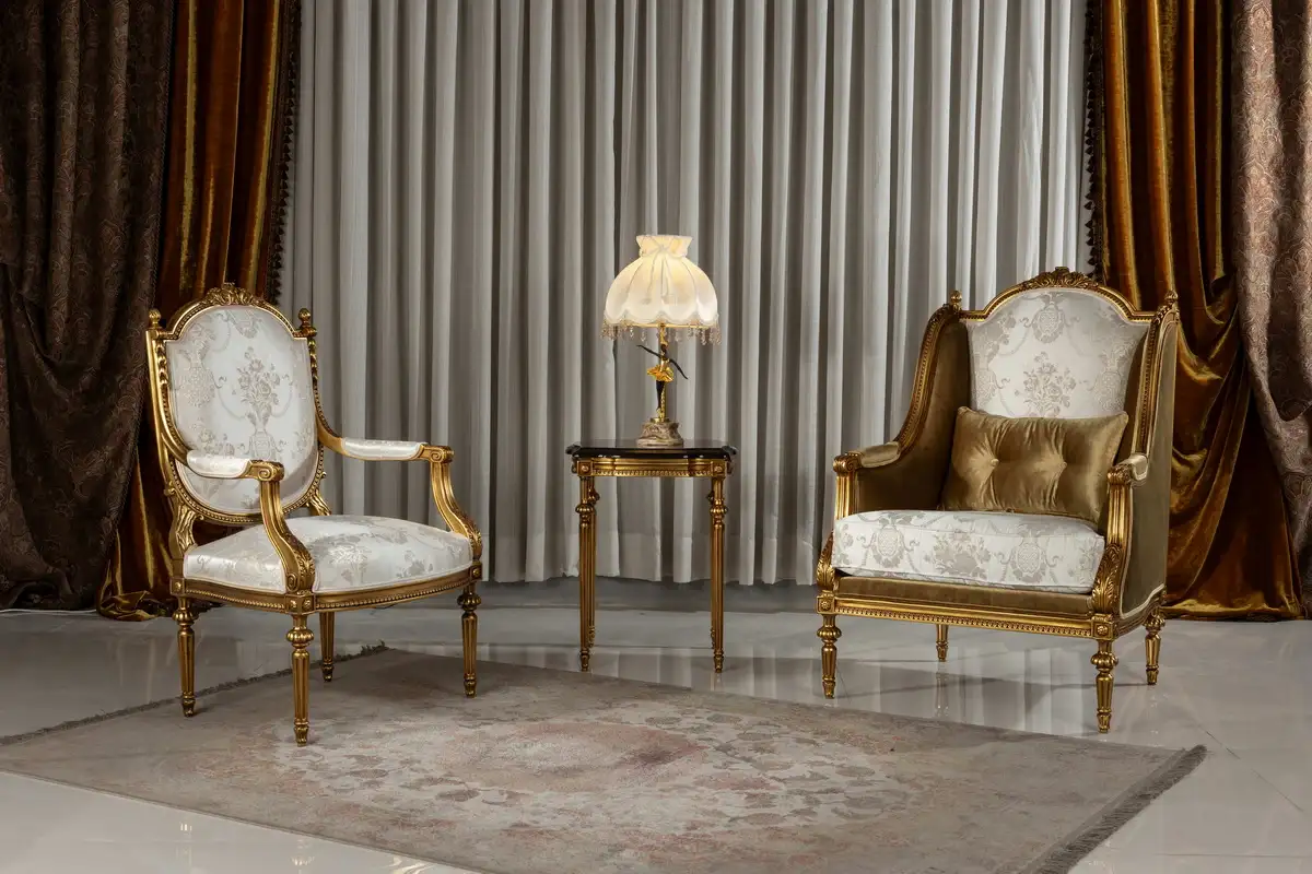 مبلمان کلاسیک مارکیز این مبلمان دارای طراحی بسیار خاص و منحصر به فرد می باشد این مبلمان از تلفیق دو سبک عربی و فرانسوی در کنار هم می باشد مارکیز منبت های بسیار ظریف و شیک دارد که باعث متفاوت شدن این مبل از مبل هایی به سبک عربی شده است .صفحات جلو مبلی و همچنین غذاخوری این کار از فناوری یا همان پولیش کار شده است هم زیبایی چندان برابری به این مبلمان داده است هم پایداری و مقاومت بیشتری دارد.