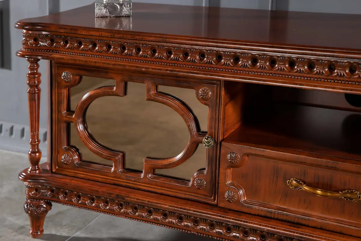 این میز تلویزیون با دارا بودن دو درب کمدی و یک کشو فضای بسیار مناسبی را برای کاربر فراهم می آورد و همچنین با نمای جذابی که دارد میتواند به منزل و چیدمان شما گرمی به خصوصی ببخشد.