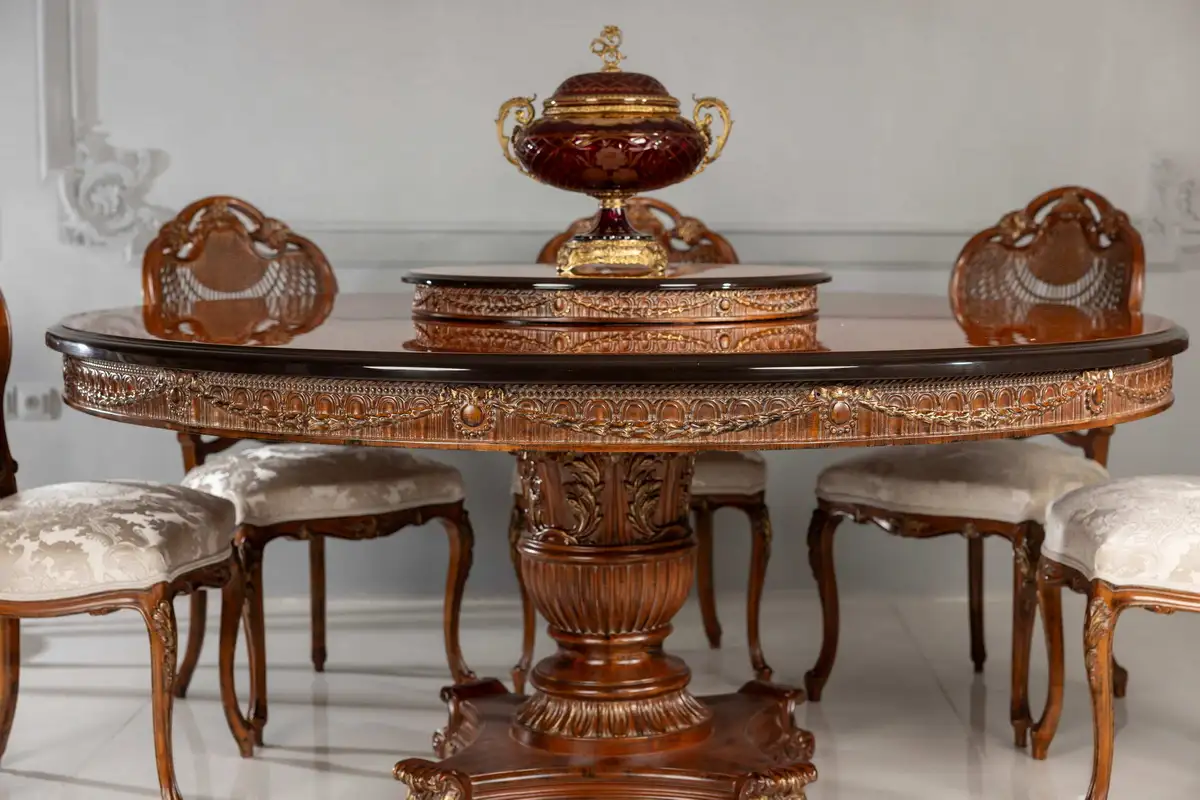 میز غذاخوری8 نفره دایره شکل بارمان گزینه بسیار مناسب برای دور هم بودن و هم نشینی مهمان های شما می باشد .وبا استحکام و منبت دست فوالعاده خود یک میز غذاخوری عالی می باشد
