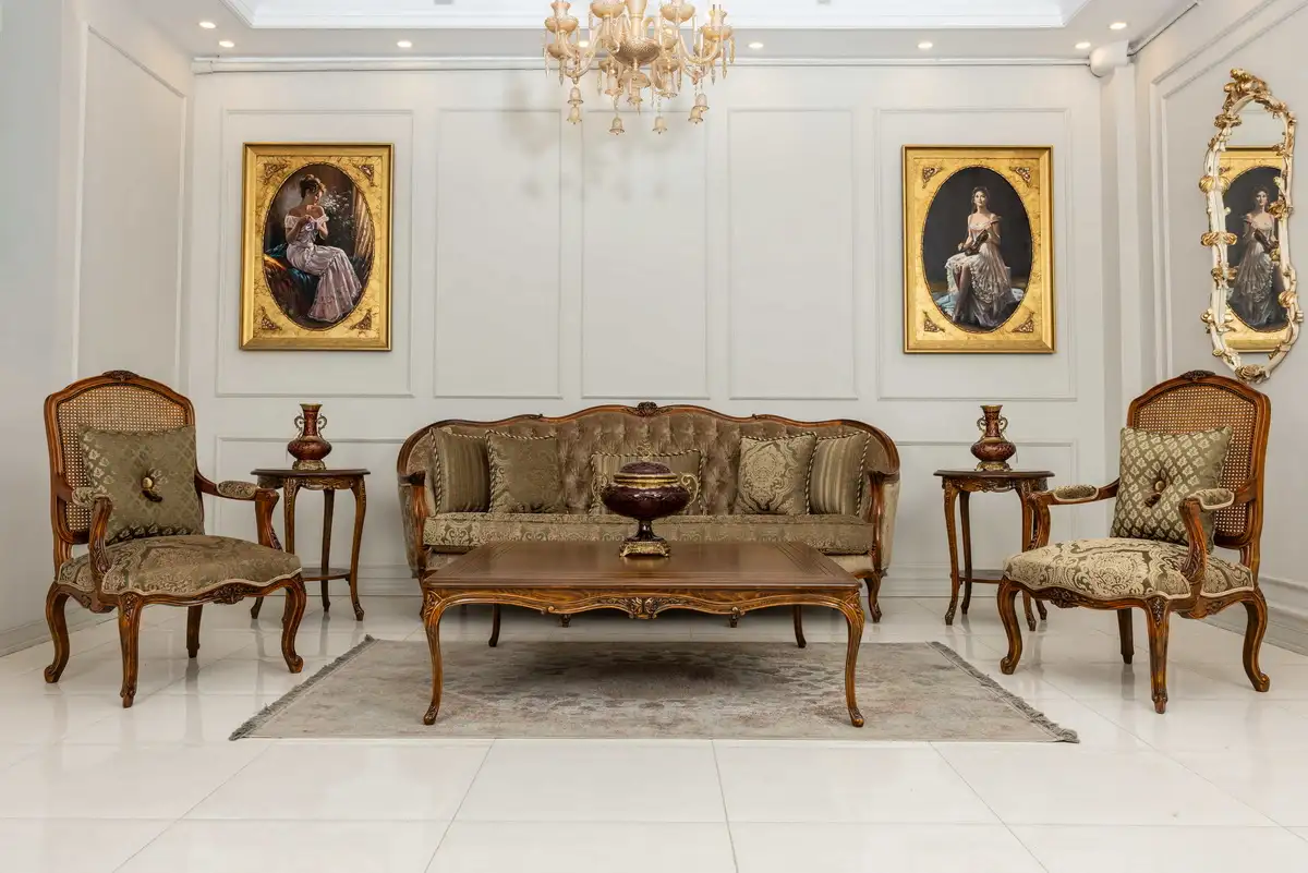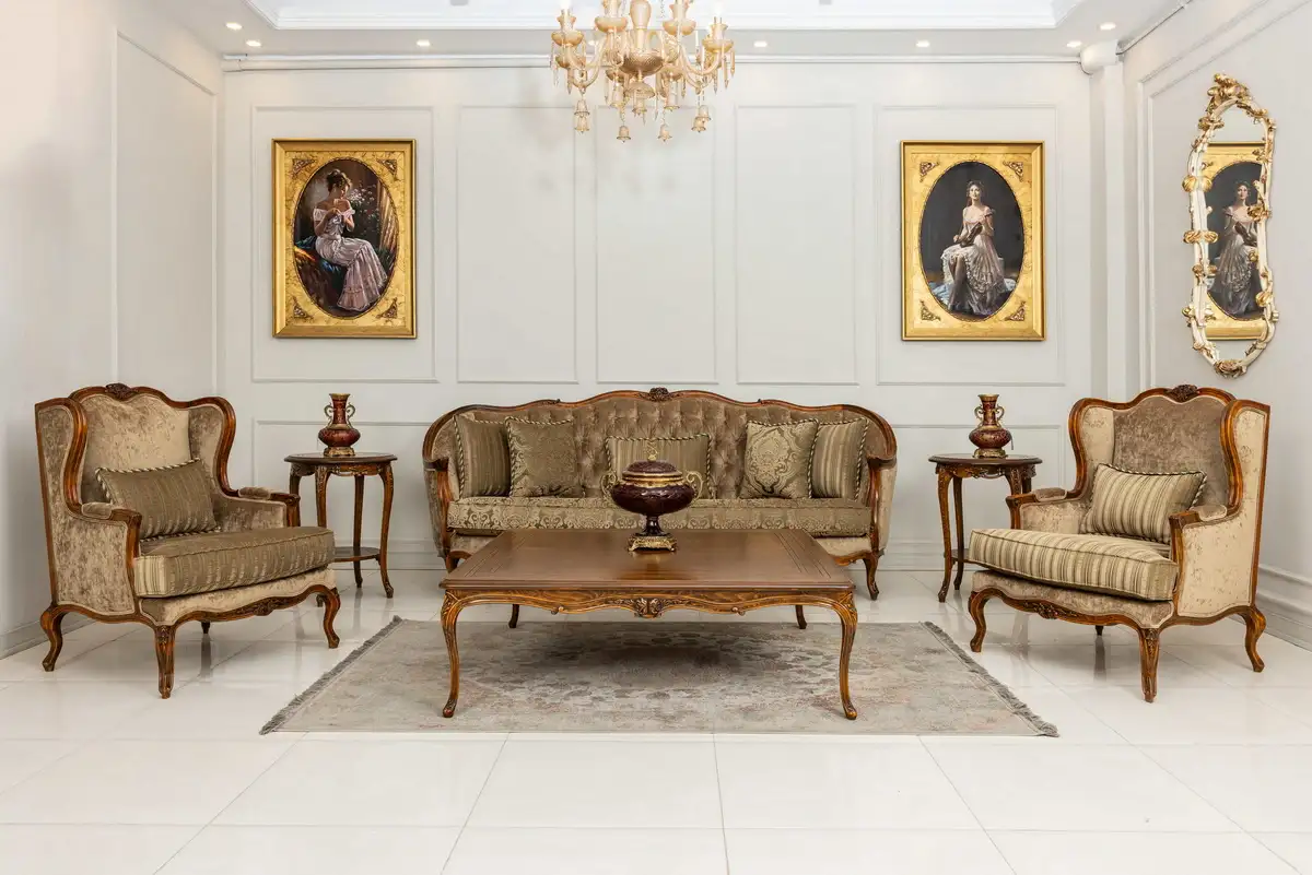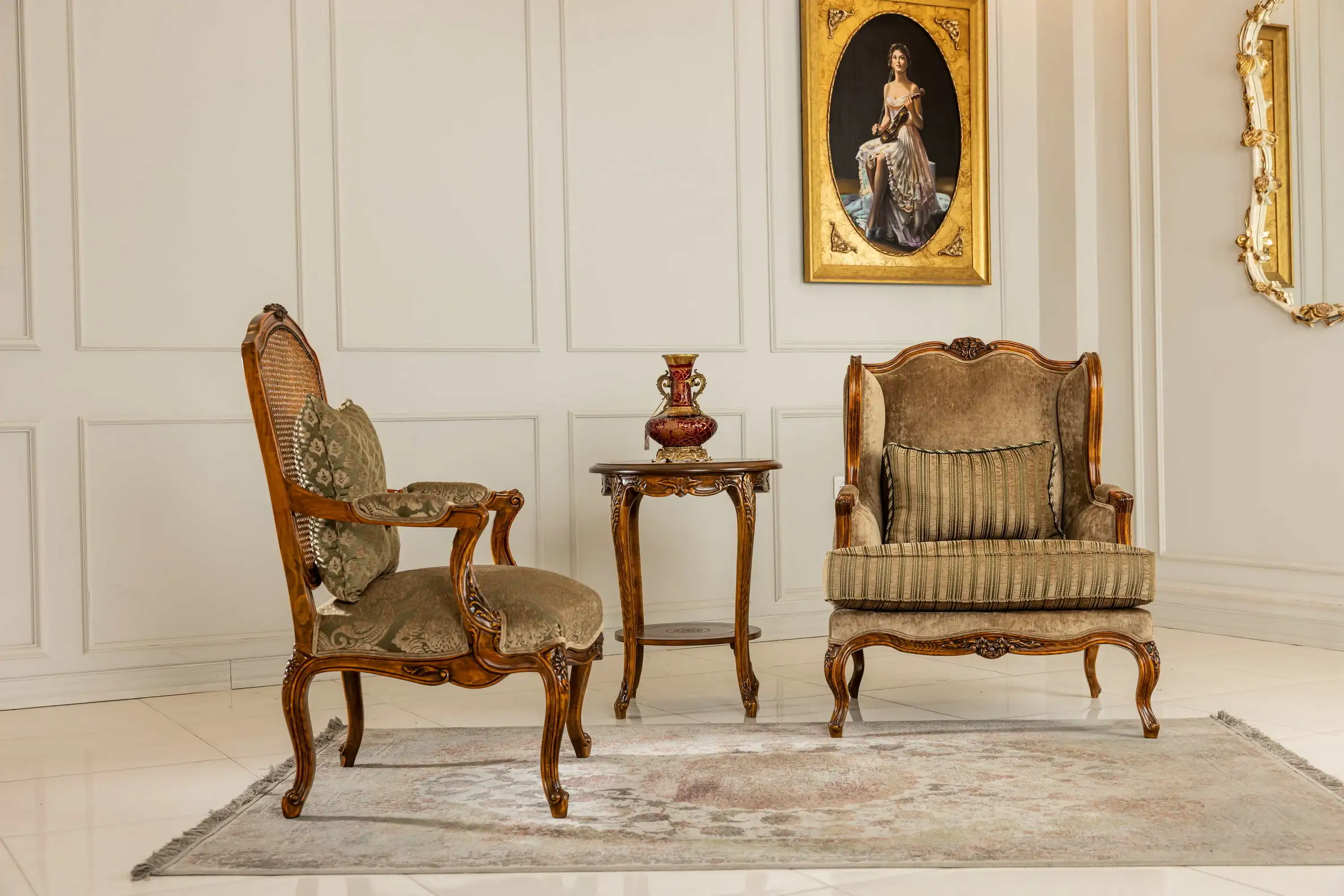 ست سیوان شامل یک کاناپه با ابعاد مناسب وظرافت خاص و دوعدد مبل تک کویین این مبل با طراحی اصولی از خوش نشین ترین مبل های برند فیدار محسوب می شودو همچنین 2 عدد مبل تک فرانسوی با اصالت وزیبا با پشتی حصیری ؛و میز جلومبلی و 2عدد میز عسلی می باشد